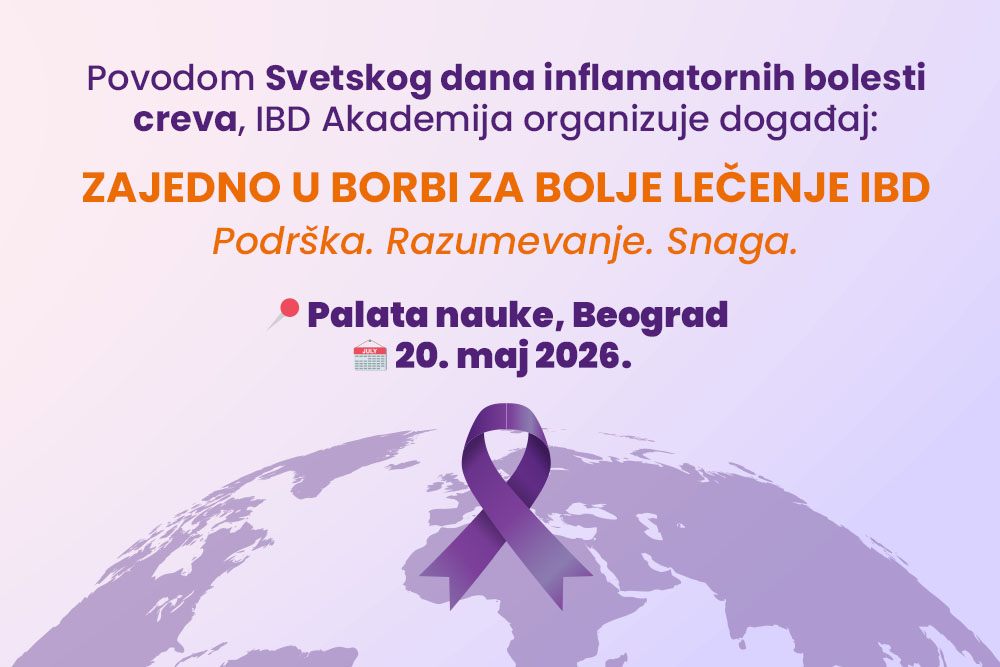 Upravo zato, savremeni pristup lečenju ovih bolesti podrazumeva mnogo više od same terapije. U susret Svetskom danu inflamatornih bolesti creva, IBD Akademija 20. maja 2026. u Palati nauke, organizuje događaj koji ima za cilj povezivanje pacijenata, lekara i šire zajednice, uz fokus na bolje razumevanje i unapređenje lečenja.